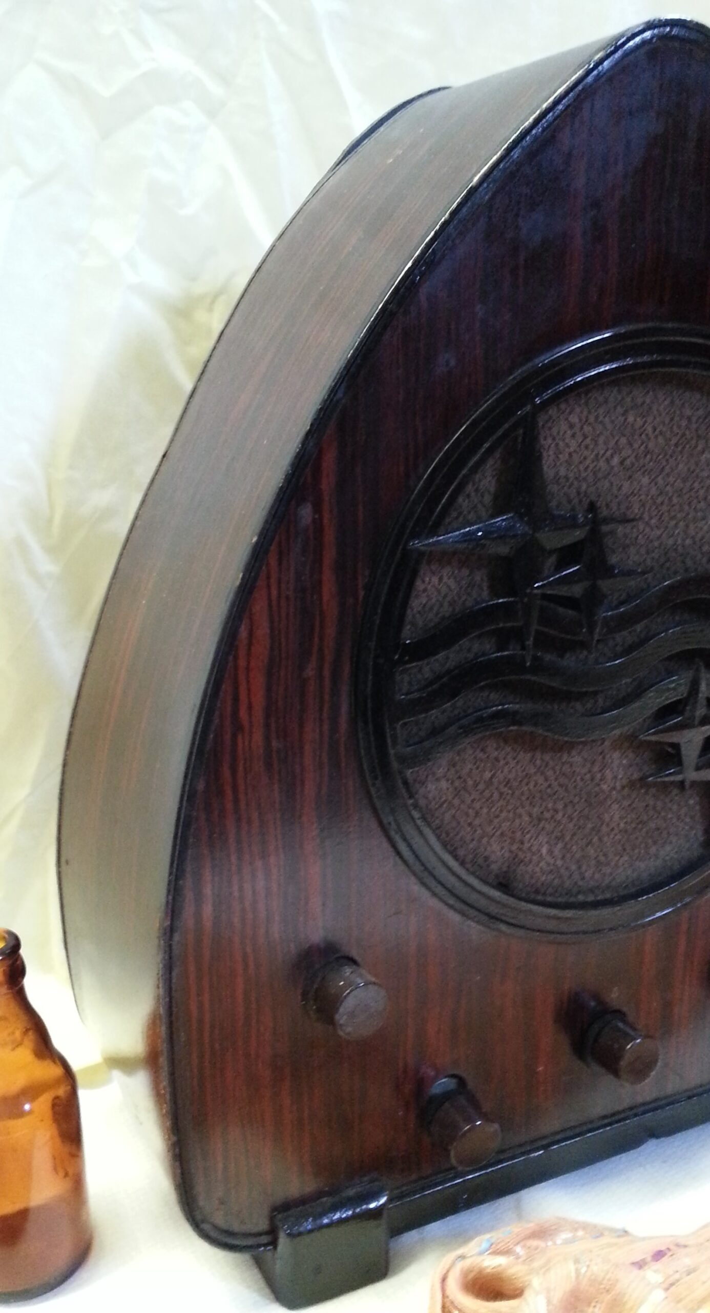 Preciosa radio de válvulas antigua. A las radios con este tipo de estructura se las llamaba Radios de Capilla, precisamente por tener esa forma.