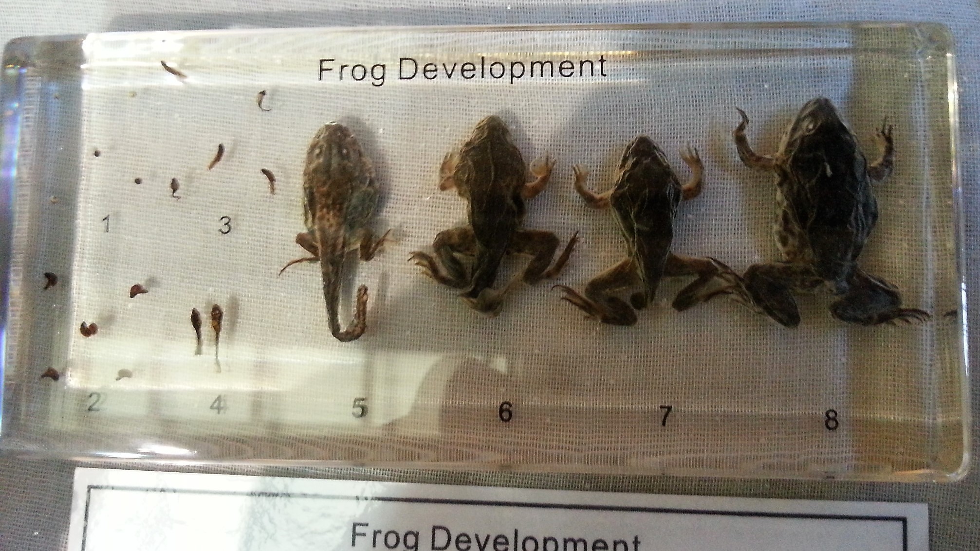 Ciclo de vida de una rana – Desarrollo biológico – Exhibición de muestras.