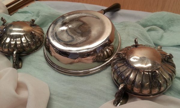 Conjunto de recoge-colillas también utilizado en las grandes mesas de lujo como recoge-migas más una pareja de preciosos ceniceros.