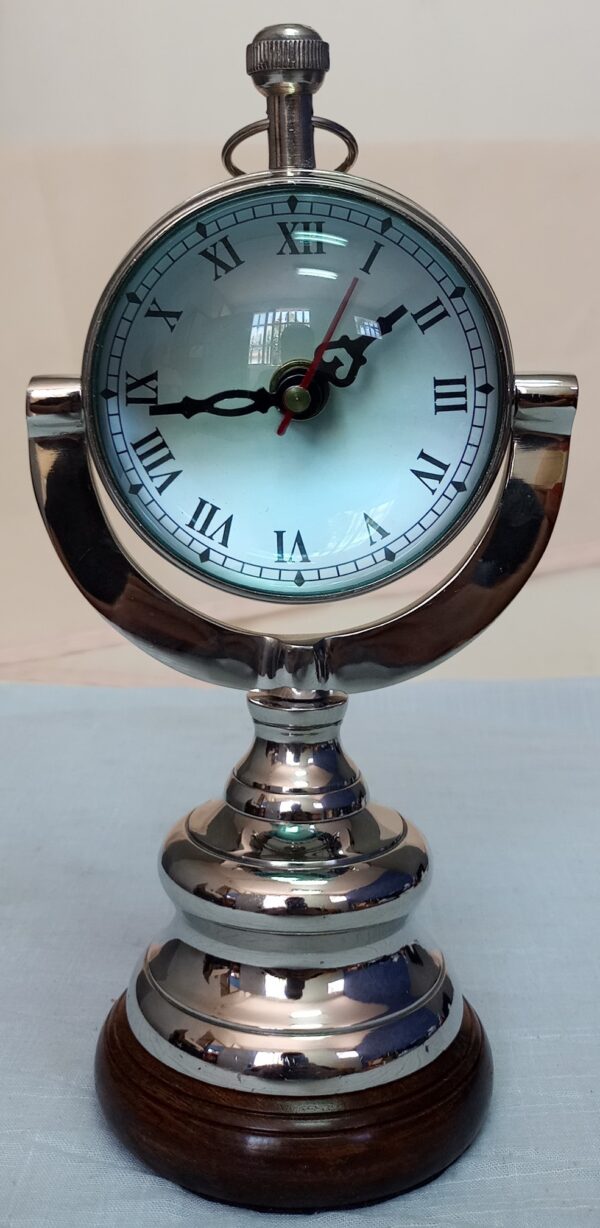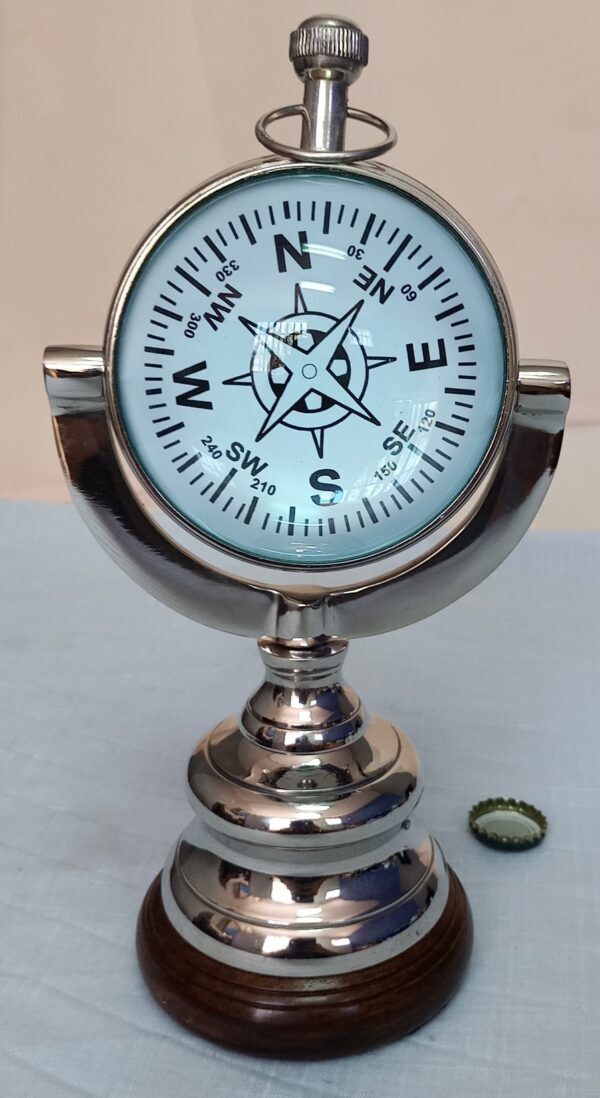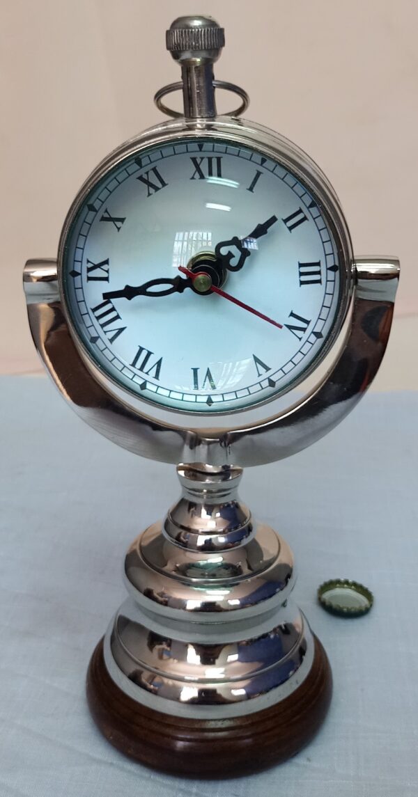 Curioso reloj de sobremesa de mucha calidad. En su parte frontal acristalada dispone de un reloj y en su parte posterior La Rosa de los Vientos.