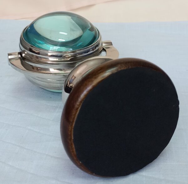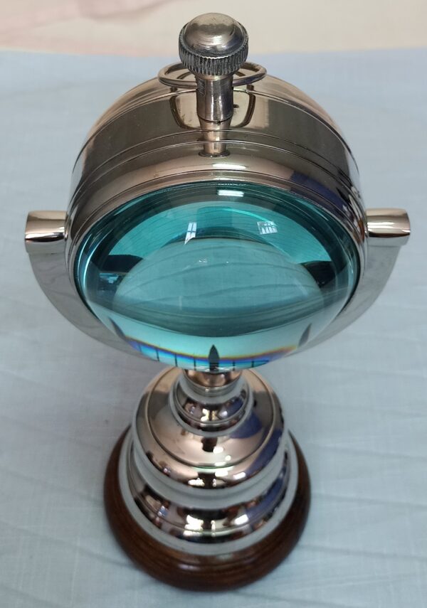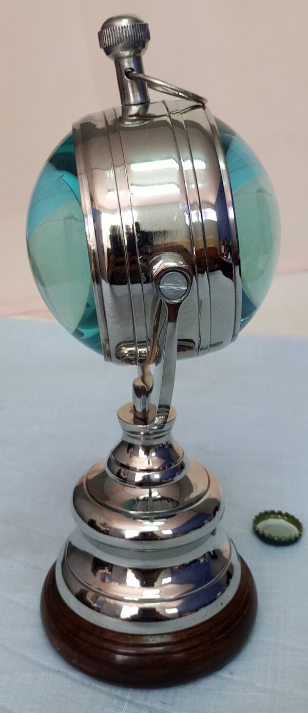 Mide 28 cm de alto * 15 cm de diámetro sus esferas y 11 cm de profundidad. Las fotos son fiel reflejo de este instrumento marítimo.