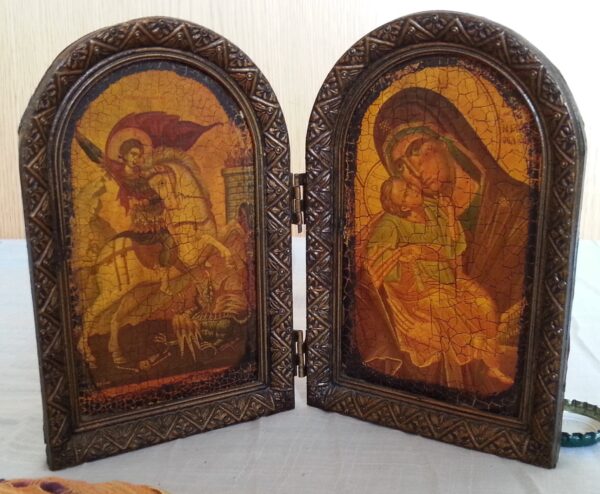Las fotografías son la mejor descripción de este Díptico religioso en madera.