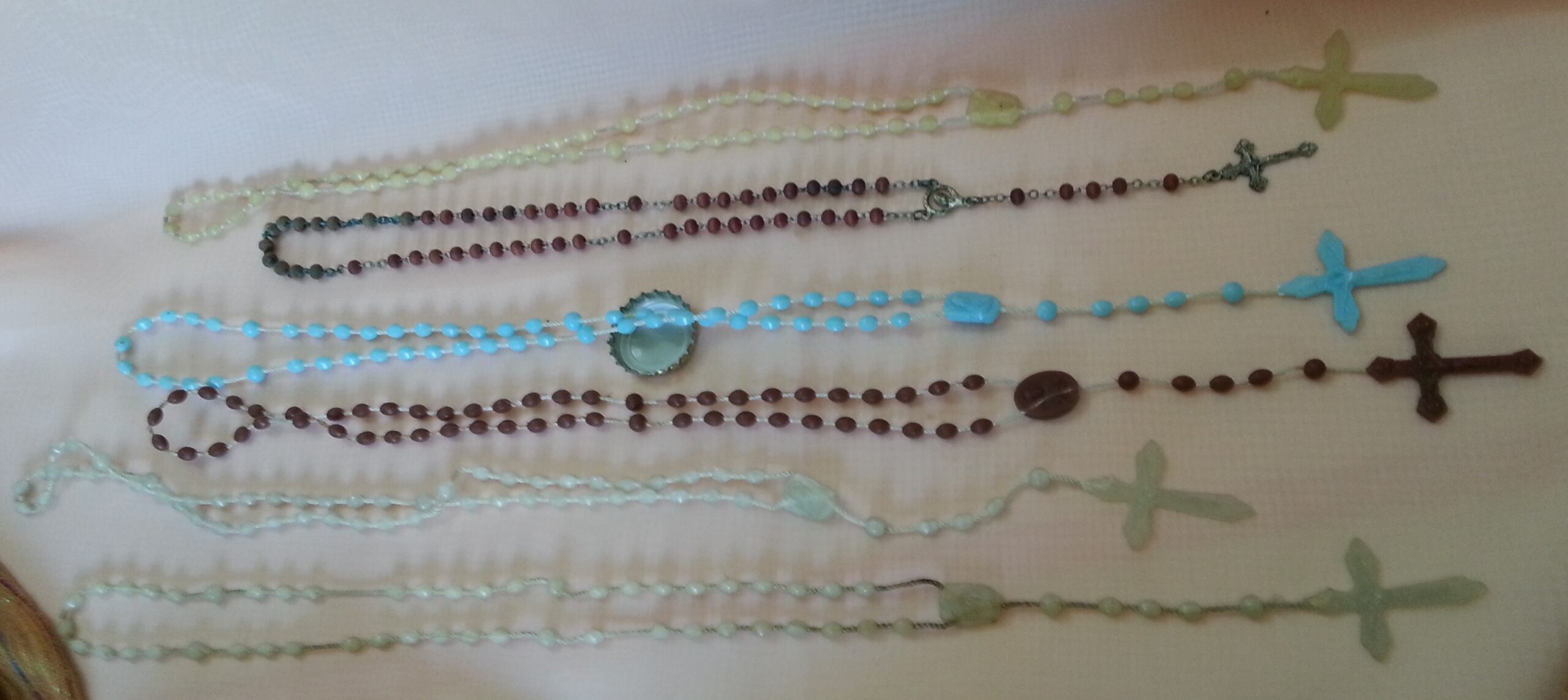 Viejos Rosarios de los años 80-90. Fabricados prácticamente todos en plástico..
