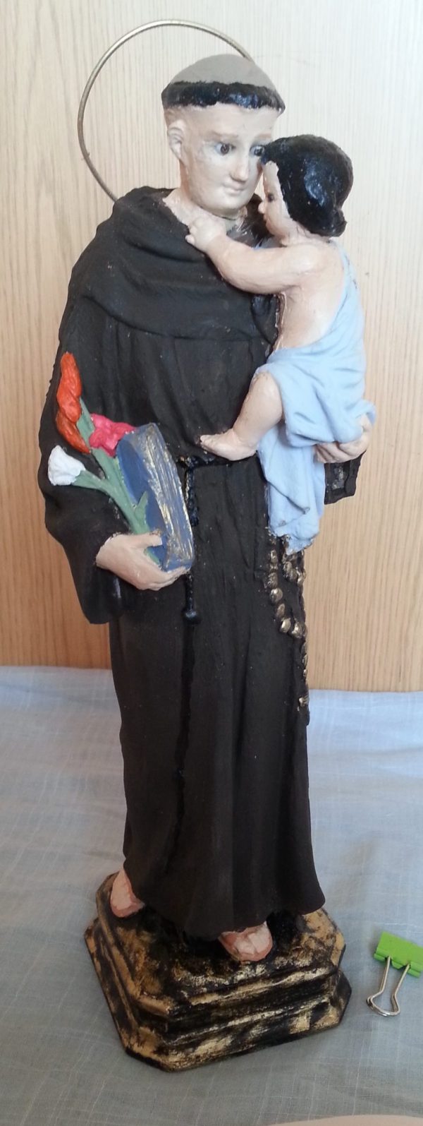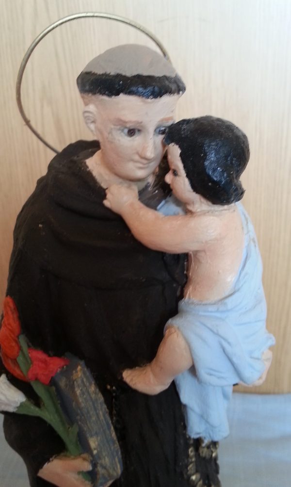 San Antonio de Padua. Con niño en brazos. Escultura en escayola.