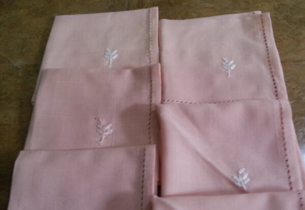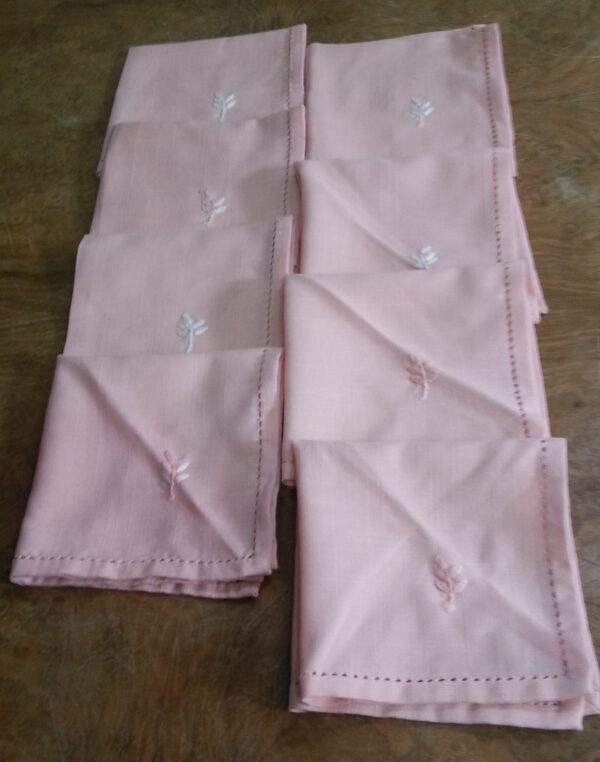 Servilletas. Artesanales en hilo. Color salmón. Conjunto de 8 unidades.