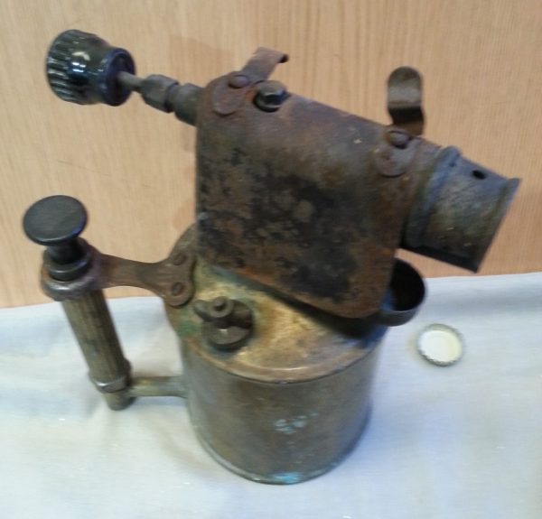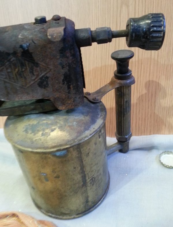 Soplete grande. Años 50. En bronce y metal. Español.