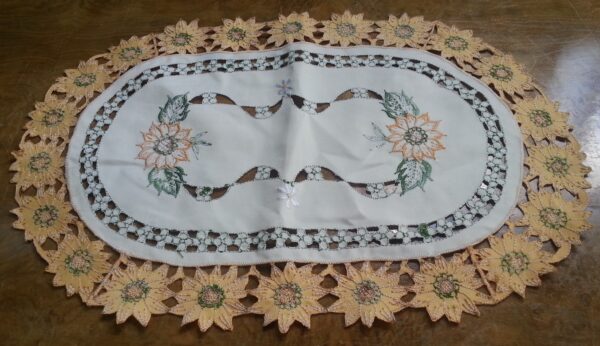 Tapete artesanal. Flores amarillas. 42 cm * 30 cm. Mantel.