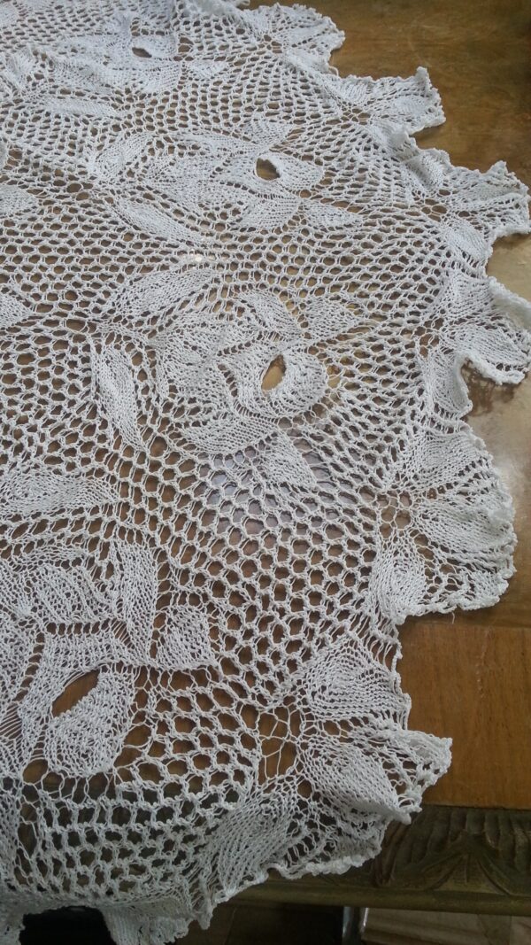 Tapete. Ganchillo en color blanco. 115 cm de diámetro. Mantel.