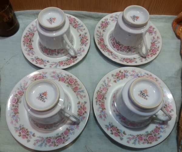 Consta de: 4 tazas y 4 platillos