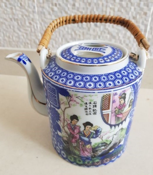 Numerosos detalles acompañan a esta tetera de porcelana en perfecto estado.