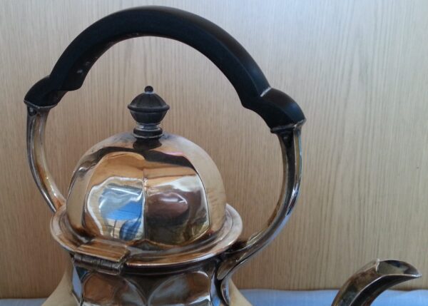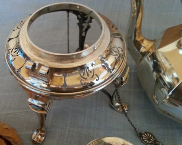 Tetera plateada con quemador. Años 70. Completa. Maravillosa.