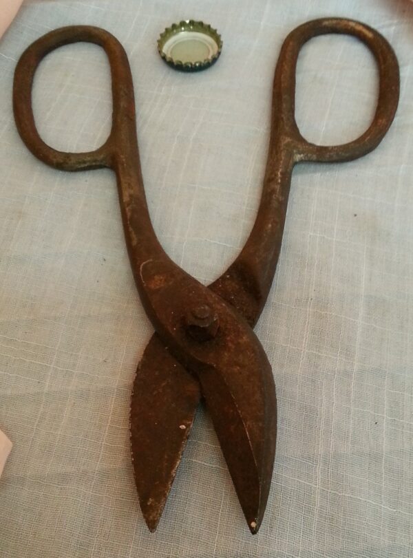 Aunque vieja esta tijera fuerte Y pesada podrá seguir trabajando mucho tiempo.