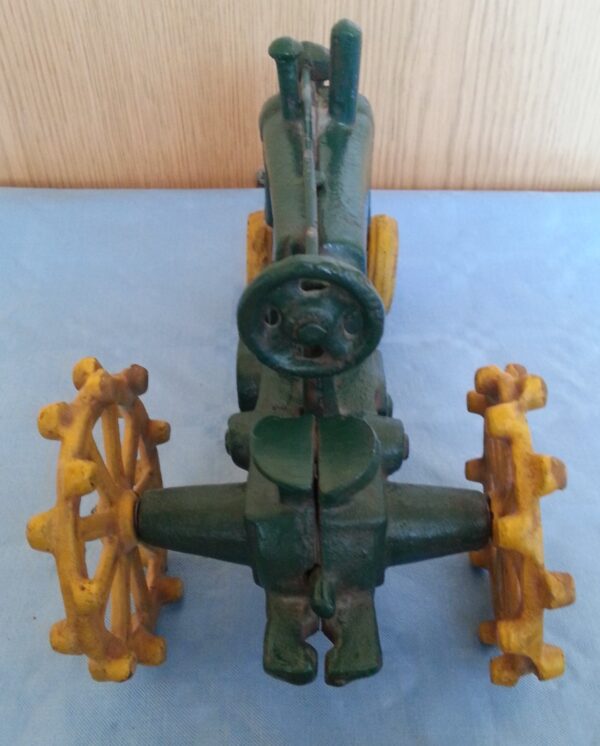 Tractor de  juguete antiguo fabricado en pesado hierro. Las fotografías son la mejor descripción de este objeto de colección.