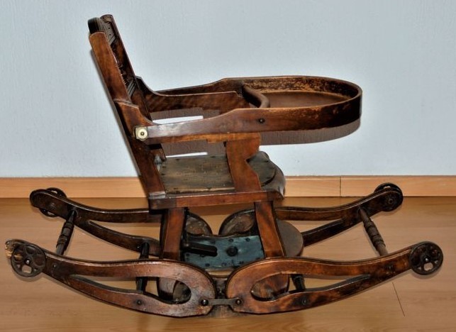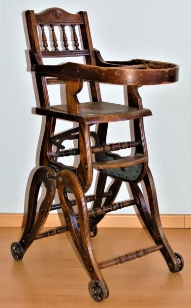 Trona centenaria para niño Madera. Años 20. Impresionante sillita para dar de comer a los niños.