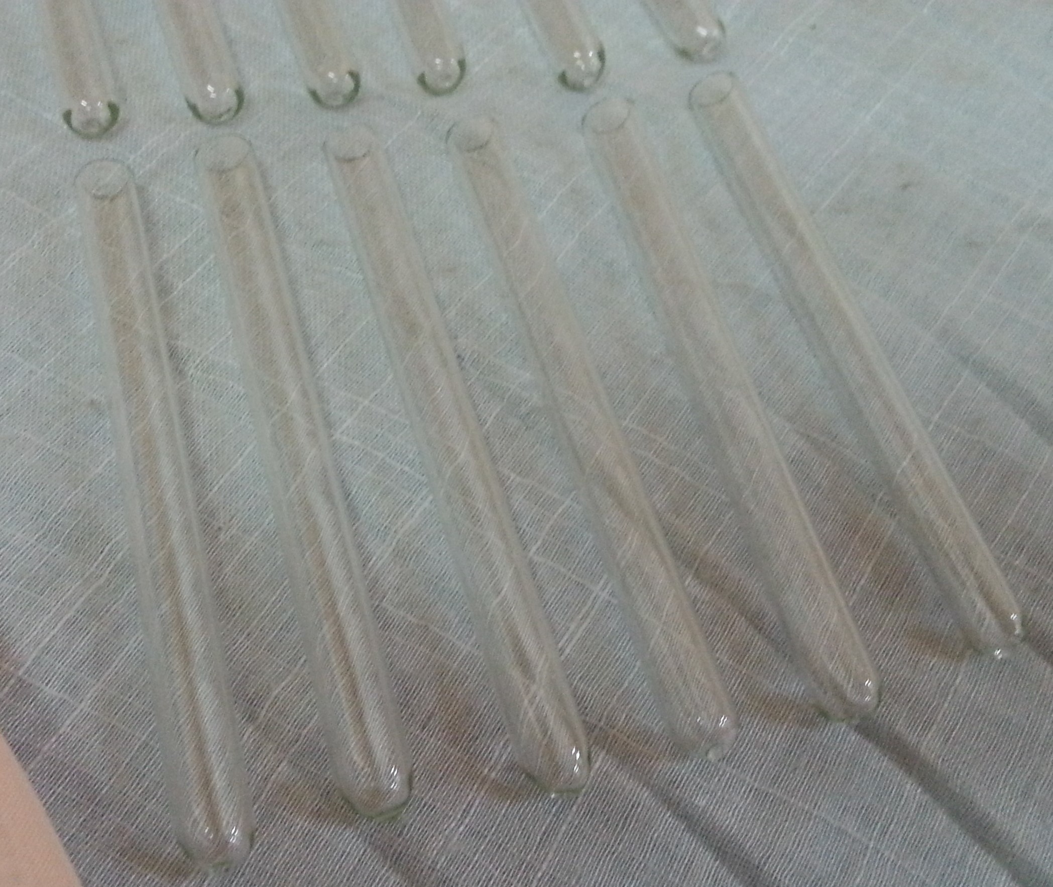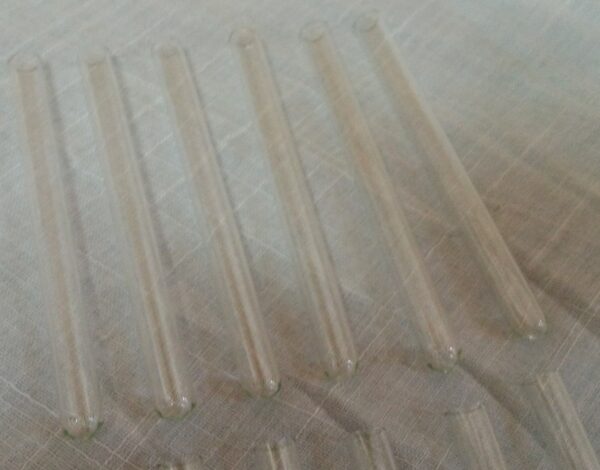 Conjunto de doce tubos de ensayo. Nuevos, a estrenar.