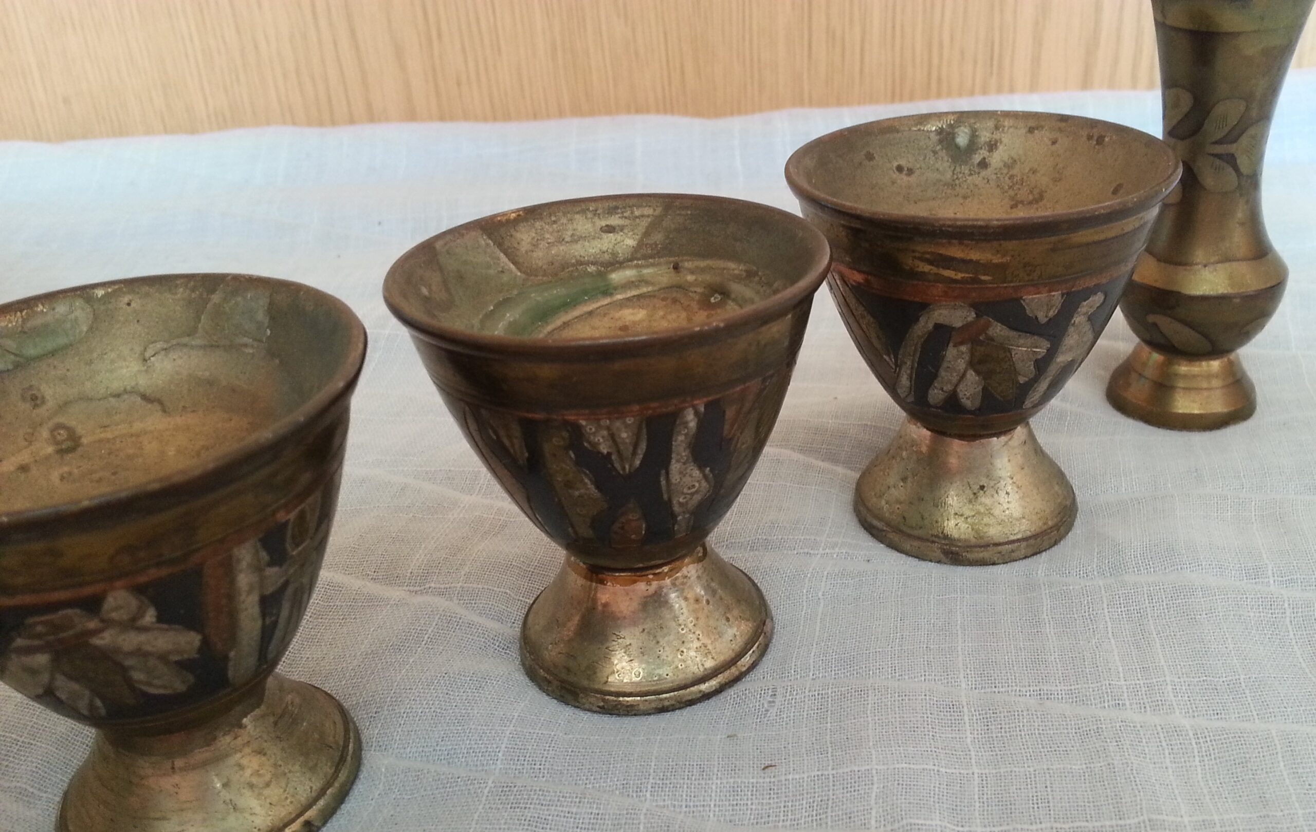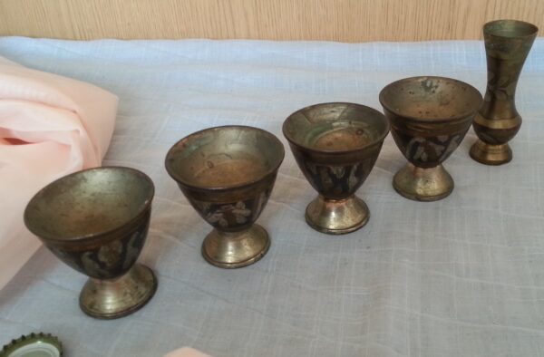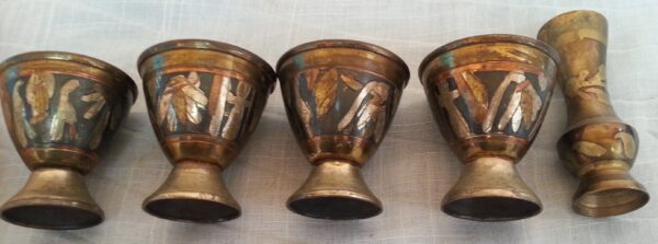 Vasitos en metal repujado. 5 unidades.