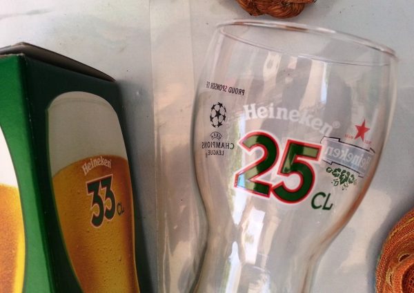 Precioso vaso de esta marca de cerveza patrocinador de la CHAMPION LEAGUE. Conserva su caja original.
