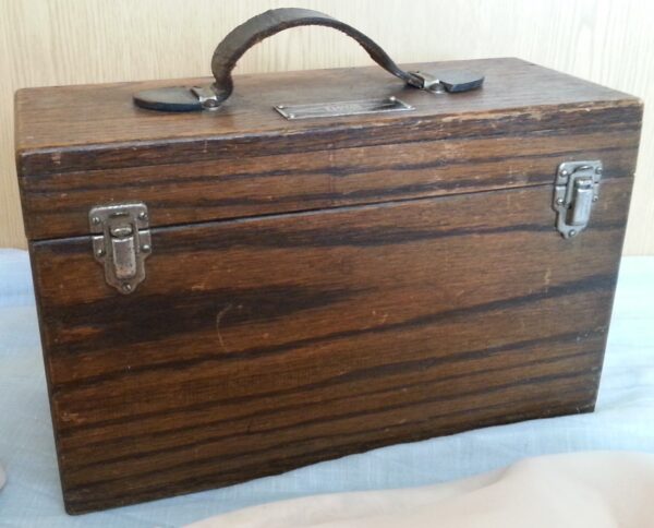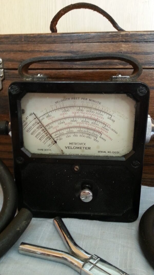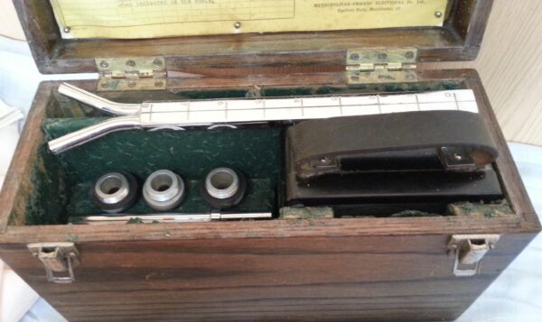 Muy especial  aparato de medición en su caja de madera original