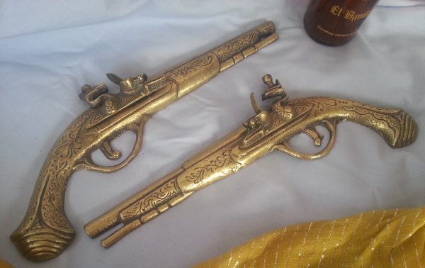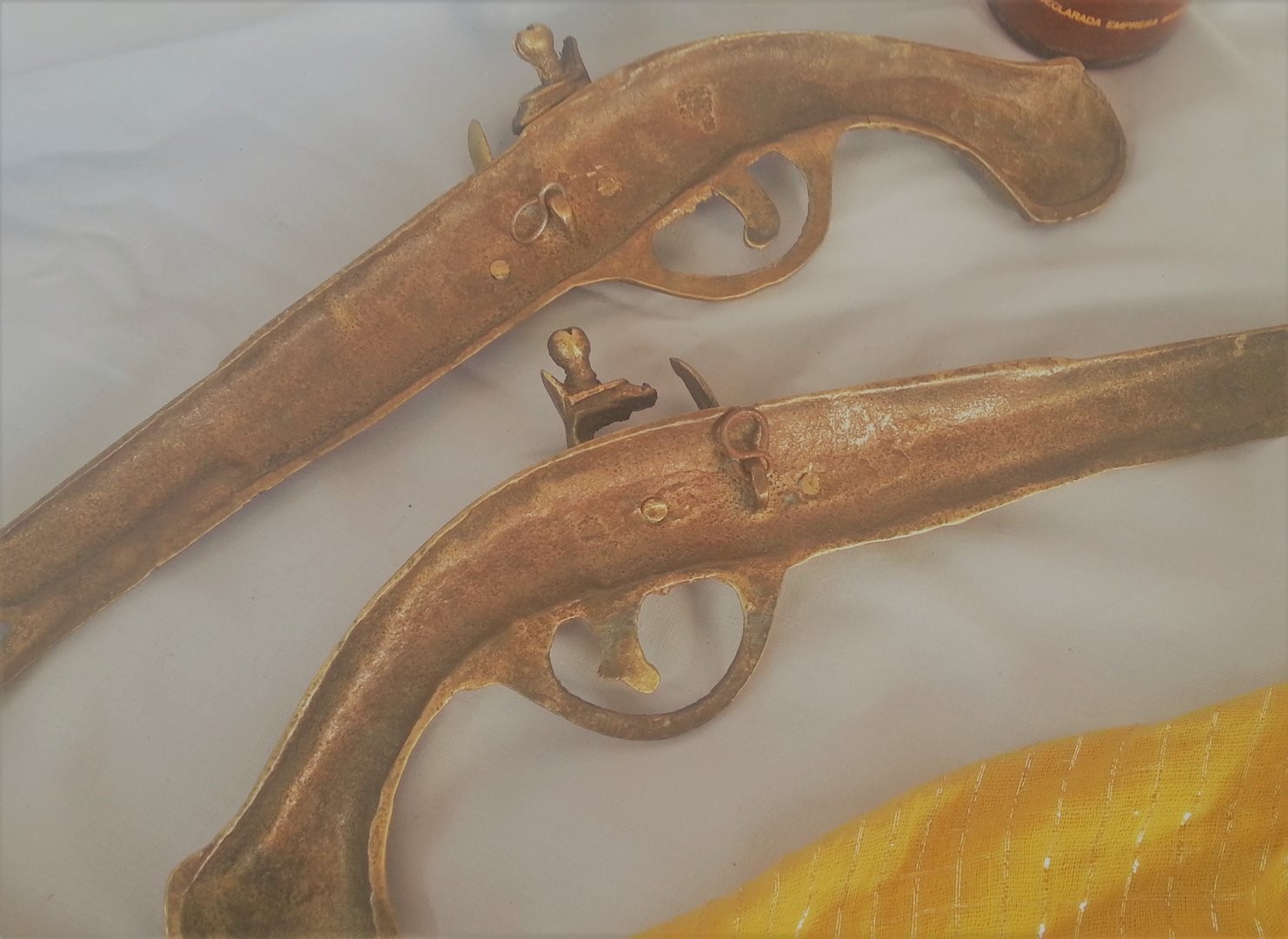 Viejas pistolas en bronce. Pareja. Réplicas de antiguas armas. Preciosos objetos