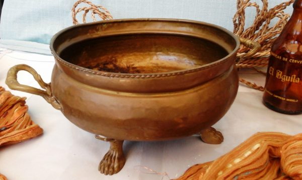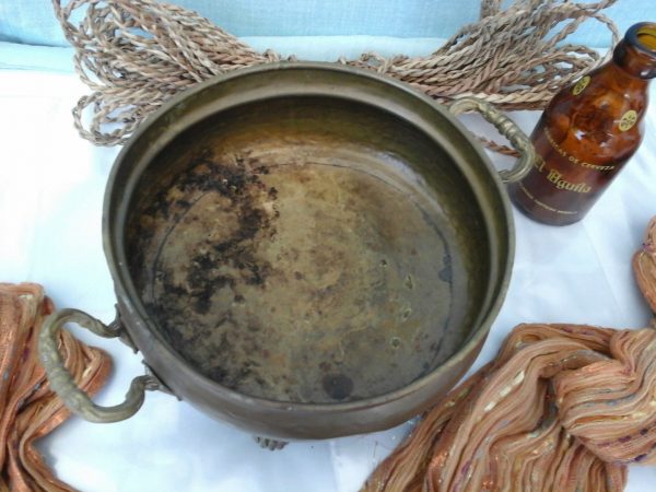 VIEJO JARRÓN METÁLICO. CENTRO DE MESA. PRECIOSO DORADO METAL: Tal cual se puede ver en las fotos. Algunas abolladiras pero es un precioso objeto para decoración rústica. Mide 12cm de alto * 29 cm de diámetro total. Ref. Inv. nº 301