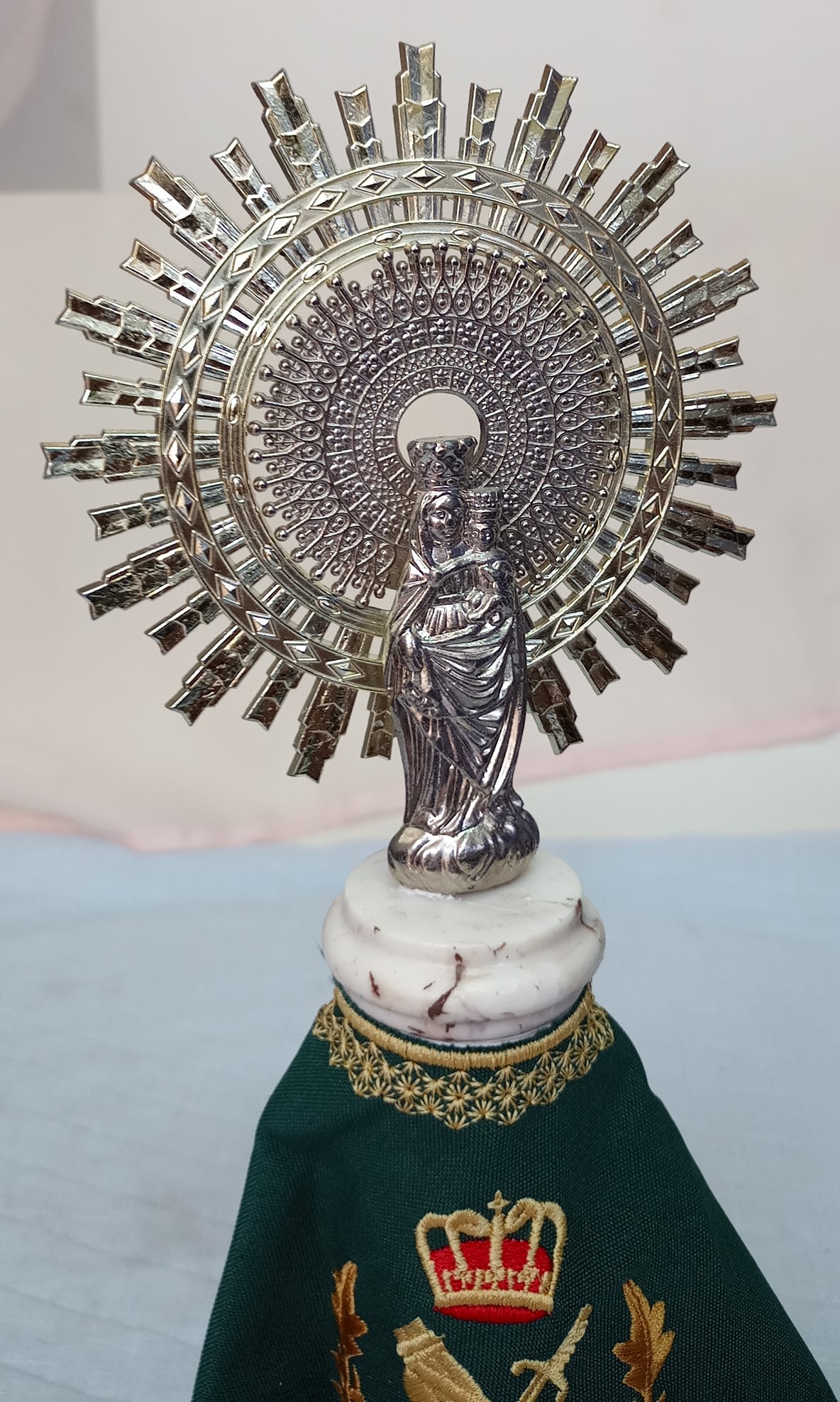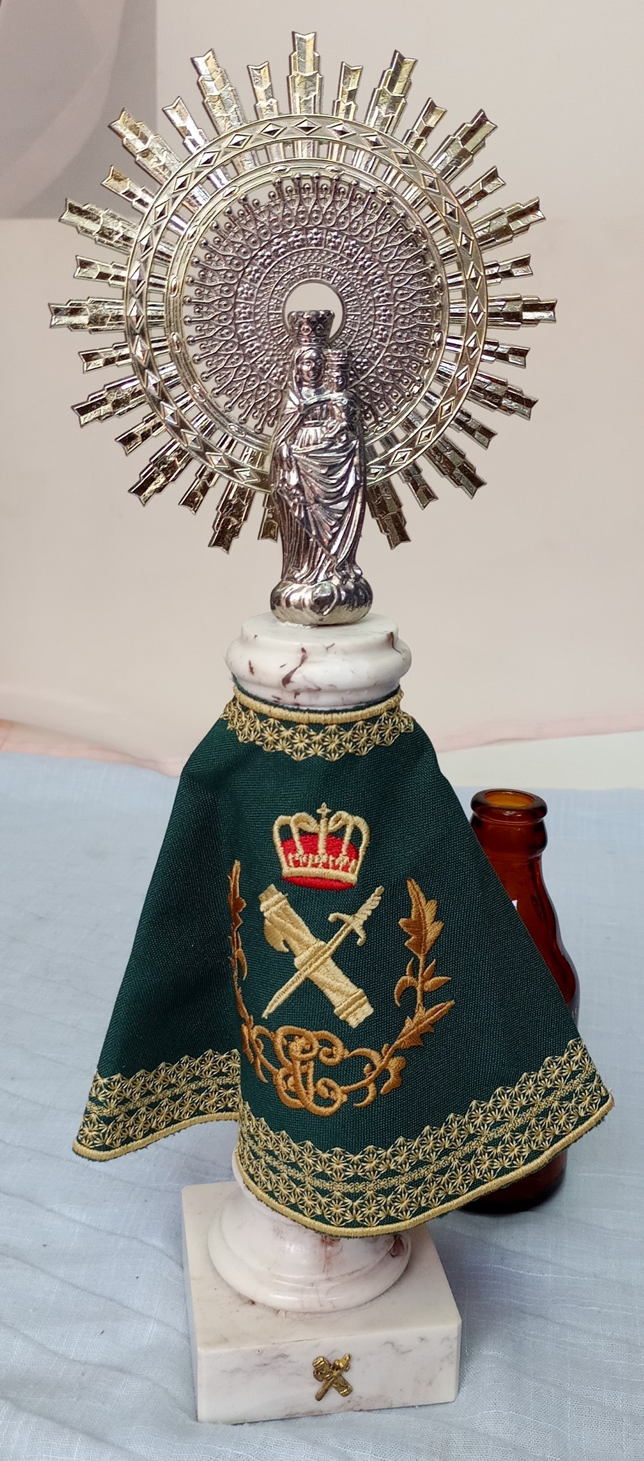 Patrona de la Guardia Civil esta preciosa Virgen del Pilar viste el manto y emblemas de la Guardia Civil.