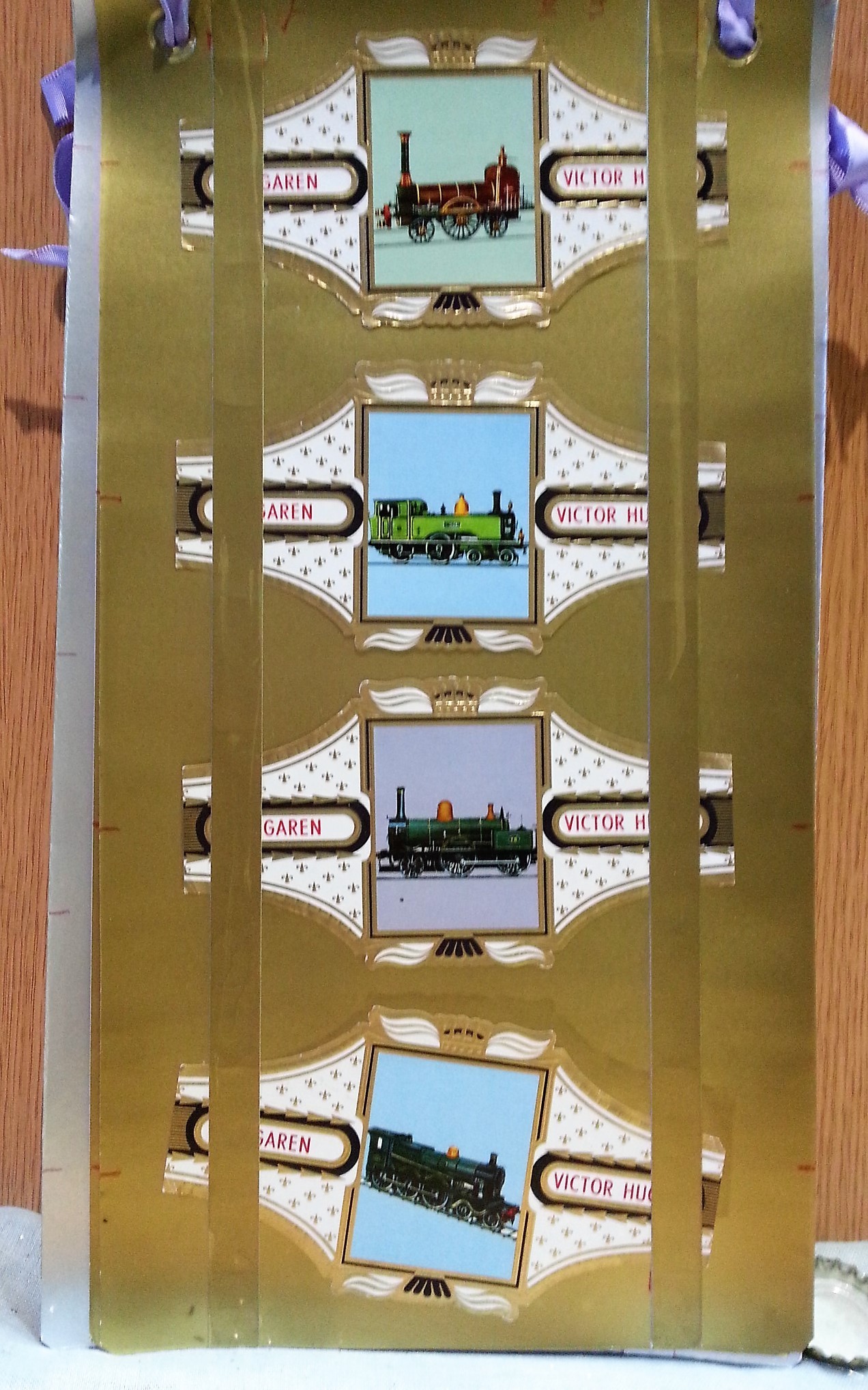 – 3 Pliegos con 12 vitolas de locomotoras antiguas