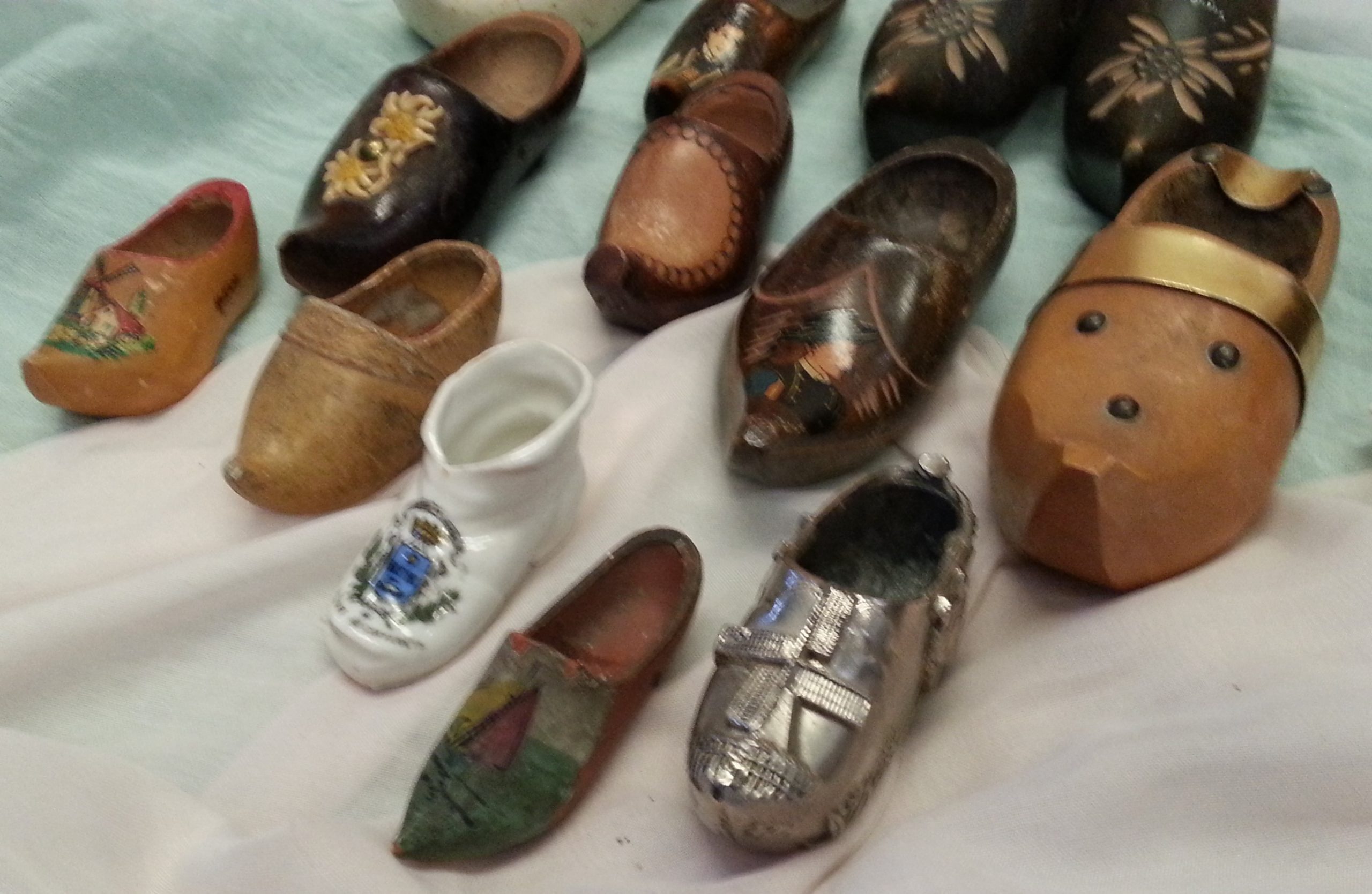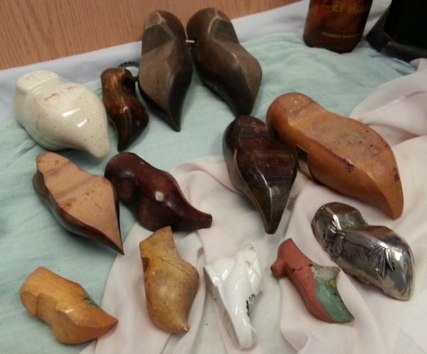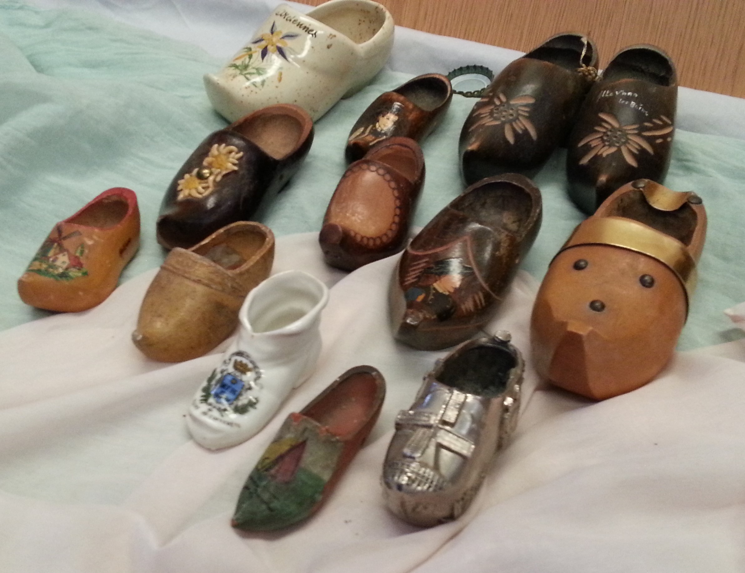 Se trata de una colección de 12 zuecos en miniatura fabricados en diferentes materiales como porcelana, madera, cerámica… y procedentes de una vieja colección de origen holandés.