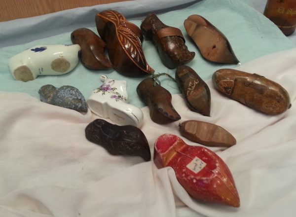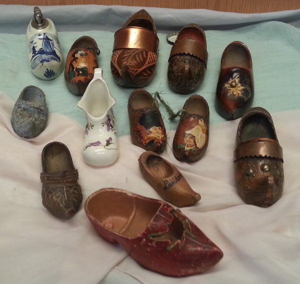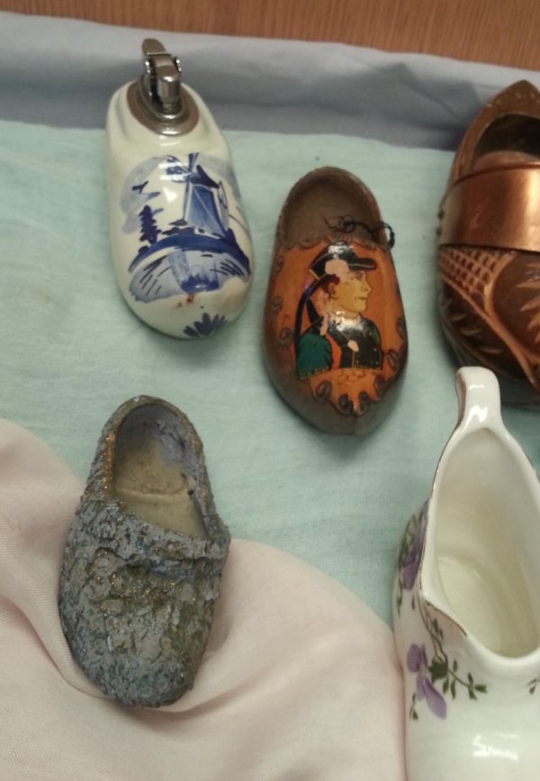 Se trata de una colección de 12 zuecos fabricados en diferentes materiales como porcelana, madera, cerámica… y procedentes de una vieja colección de origen holandés.